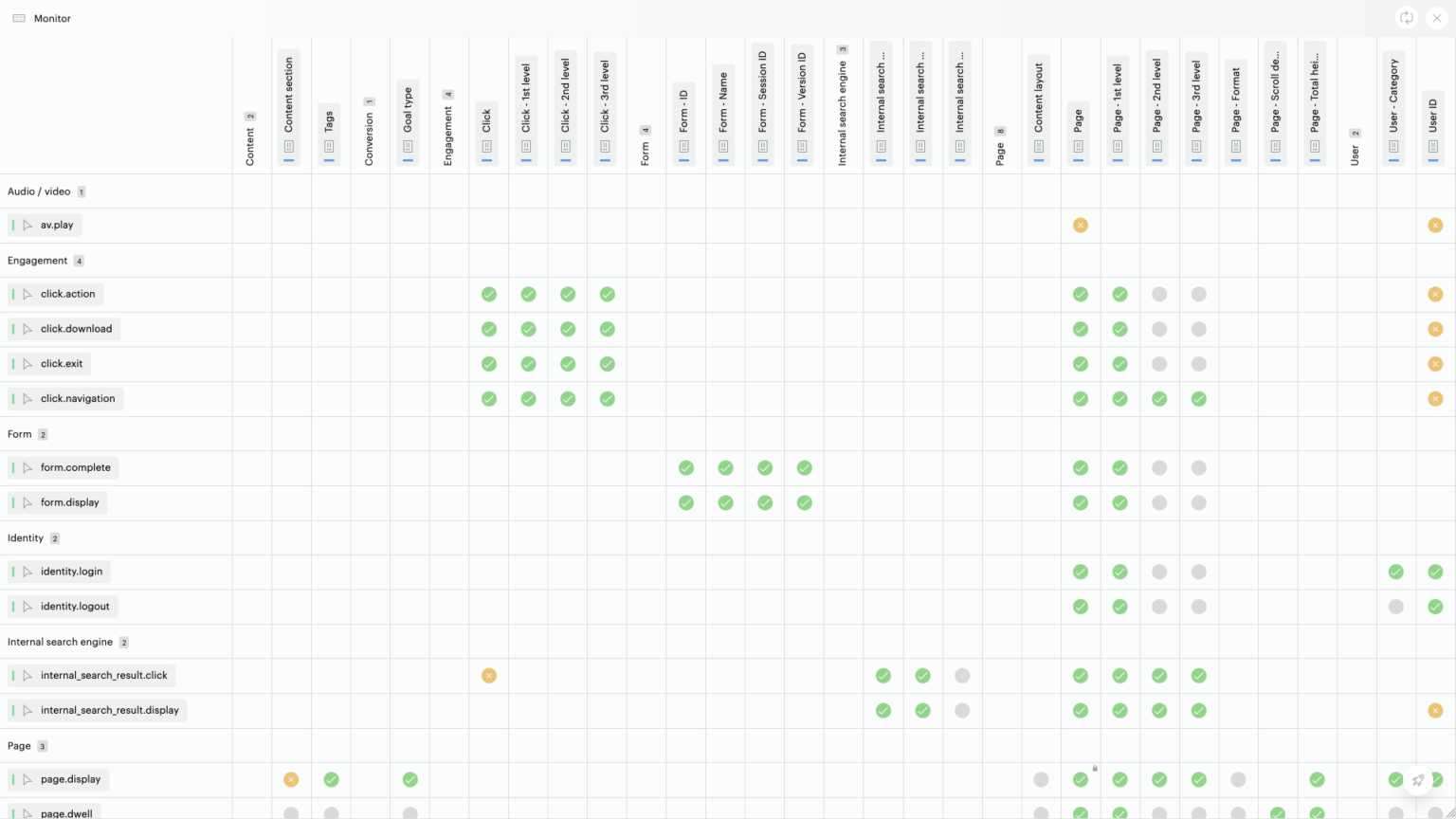 C’est une distinction importante pour les équipes qui pilotent la qualité analytics : le taux de complétion globale donne une image de la richesse du modèle de données, la complétion requise indique si le strict minimum est en place pour l’analyse.