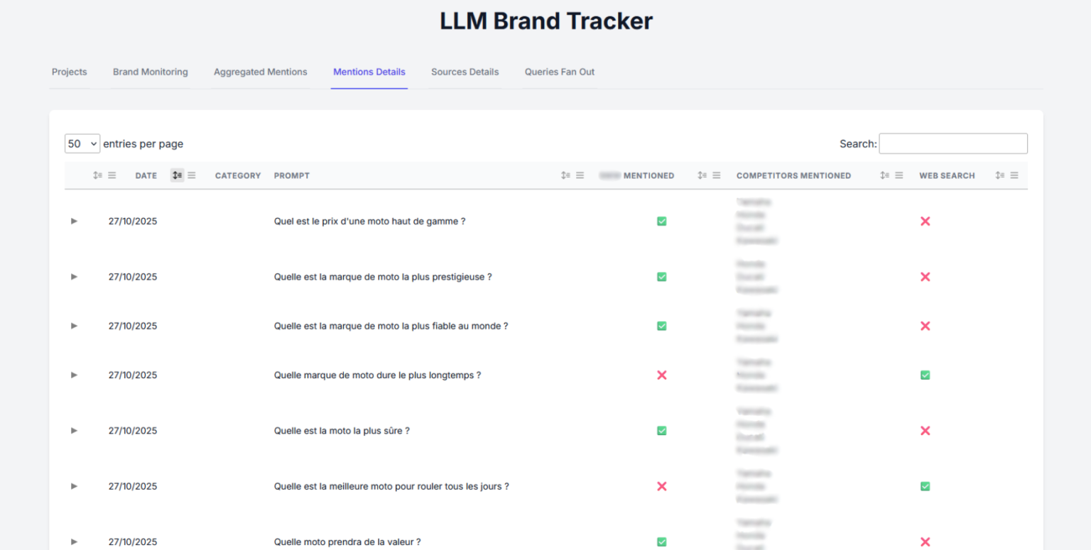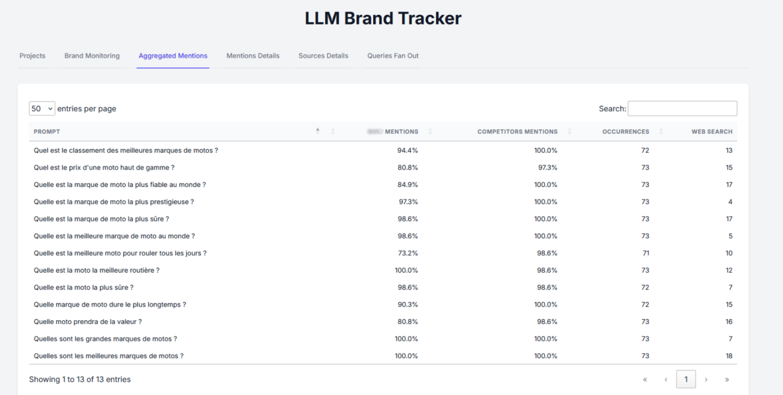 Analyse de la présence des concurrents : Suivre les mentions des marques concurrentes par les LLMs pour comprendre comment elles sont positionnées, comparées ou recommandées face à la vôtre.