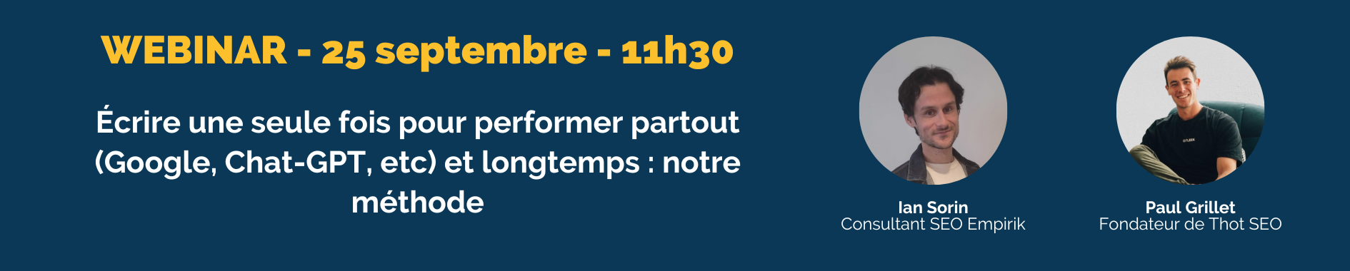 - Démonstration live avec cas réel : Paul Grillet créera un contenu en direct selon cette méthode, en utilisant les nouvelles fonctionnalités de Thot SEO spécialement conçues pour mesurer et optimiser la qualité éditoriale.
